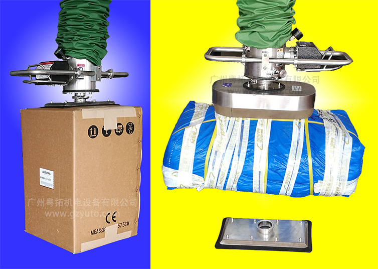 廣州粵拓宣布研發(fā)出一款新型的轉換裝置,在生產中能夠迅速更換吸盤, 在一臺搬運機上可實現搬運紙箱和袋子的雙功能。 此裝置通用于所有型號安維爾真空搬運機,操作人員可在20秒鐘內完成吸盤更換。此裝置也可在原有設備上改制,改制后操作方式不變。