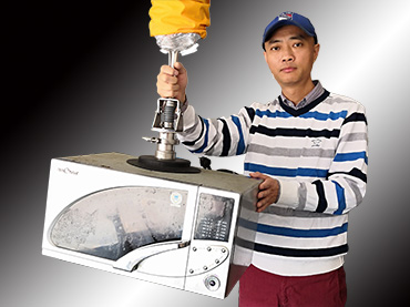 照片中的單手操作真空搬運(yùn)機(jī)型號(hào)為VTSH140, 提升高度1.7米,最大提升能力60公斤, 性能上超過(guò)任何進(jìn)口品牌。 吸盤連接器標(biāo)配90°彎頭, 可吸附從垂直到水平放置的物體。 同時(shí)配有快速轉(zhuǎn)換接頭, 可根據(jù)物體大小和形狀快速更換多種吸盤。