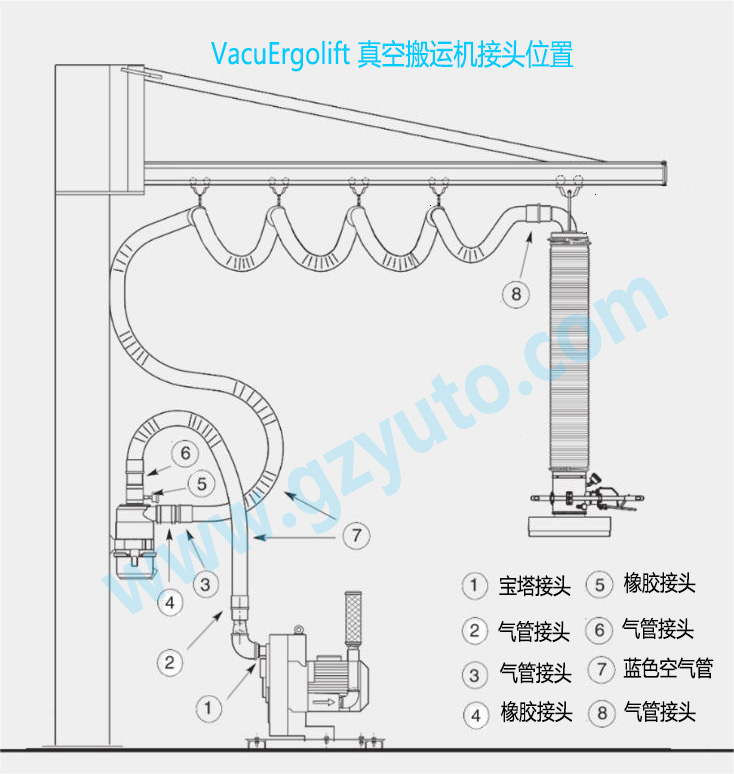 從寶塔接頭、空氣管兩端的橡膠接頭到過濾器上的橡膠接頭, 以及特制的適配器等等,我們所提供的這些配件能夠非常高效地將空氣管與提升管、真空泵和過濾器連接起來, 形成一個密閉的真空系統(tǒng)。所有配件都經(jīng)過嚴格挑選,不僅耐用,而且易于安裝, 進而最大程度發(fā)揮了高流量真空系統(tǒng)的效率。系統(tǒng)效率越高, 吸盤單位面積上的吸力就越大。 在這些配件上多花一點小錢就能取代價格昂貴結構復雜的高真空真空泵, 從而為客戶節(jié)省下更多的錢。只有設備買回來能夠穩(wěn)定持續(xù)地工作數(shù)年, 客戶才能從設備上不斷獲得收益。這正是廣州粵拓VacuErgolift(易施力)系列真空搬運機的價值所在!