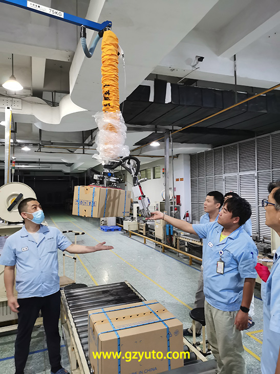 為了改善生產(chǎn)線終端搬運(yùn)和碼垛的工作效率, 降低工作強(qiáng)度和減少生產(chǎn)成本,因?yàn)榧技闻_灣總廠已經(jīng)使用過瑞典產(chǎn)同類設(shè)備, 東莞技嘉電子在全國范圍內(nèi)尋找最可靠的符合人工學(xué)的搬運(yùn)設(shè)備供應(yīng)商。 方案調(diào)研和項目考察歷時2個多月,經(jīng)過激烈的角逐, 在淘汰了其他潛在競爭對手后,技嘉電子與 廣州粵拓正式簽署了《設(shè)備采購合同》和《長期供貨合同》。 廣州粵拓成為技嘉科技的Contract Supplier, 為雙方未來進(jìn)一步合作奠定了堅實(shí)的基礎(chǔ)。