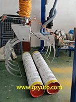 搬運(yùn)機(jī)配有專門設(shè)計(jì)的布卷夾具, 可搬運(yùn)重量90公斤、幅寬2米、 最大直徑600毫米的各類布卷、紙卷、塑料卷、金屬管等等各類圓筒狀物體。 終端夾具依靠壓縮空氣動(dòng)力, 控制閥可控制夾爪張開和夾緊, 速度可調(diào)。